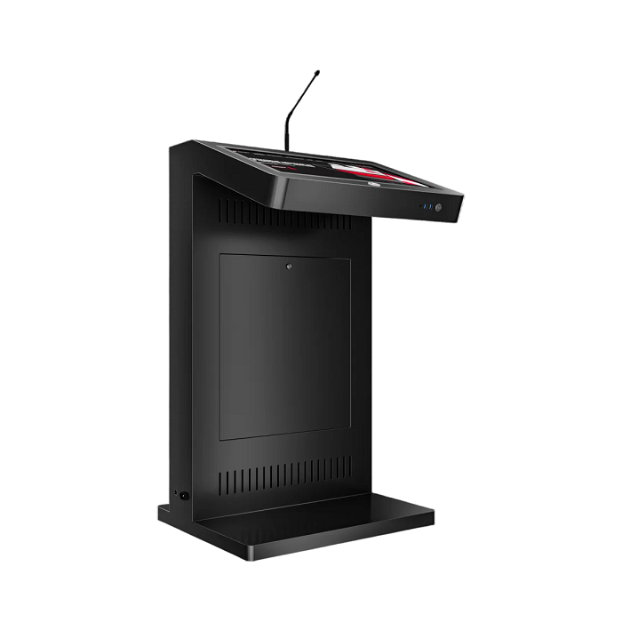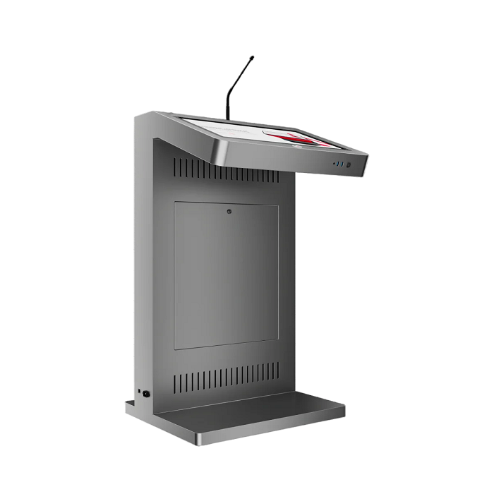 Мультимедийное решение, которое позволяет не только ярко выступить на большую аудиторию, с отображением презентационного материала, но и эффектно продемонстрировать рекламную информацию о компании, предлагаемых товарах / услугах, спикере, на большом внешнем дисплее трибуны. Модель Double 23,8" оснащена мощным микрофоном, сенсорным дисплеем для спикера, а также большим внешним дисплеем для рекламного контента и набором разъемов для подключения дополнительной техники. Такая трибуна станет прекрасным помощником на конференциях, выставках, спортивных мероприятиях или других мероприятиях, где требуется визуальная поддержка презентаций и общение с аудиторией.