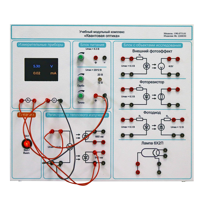 Лабораторная установка комплекта предназначена для проведения лабораторно-практических занятий в учреждениях начального профессионального, среднего профессионального и высшего профессионального образования, для получения базовых и углубленных профессиональных знаний, и навыков по курсу «Квантовая оптика».